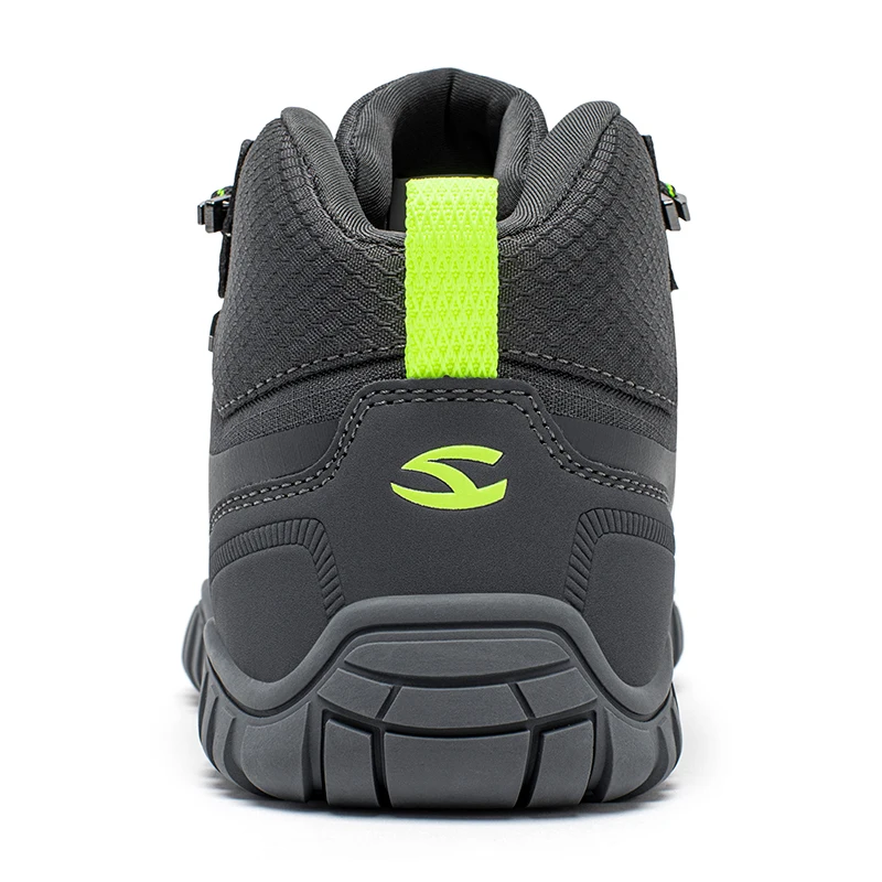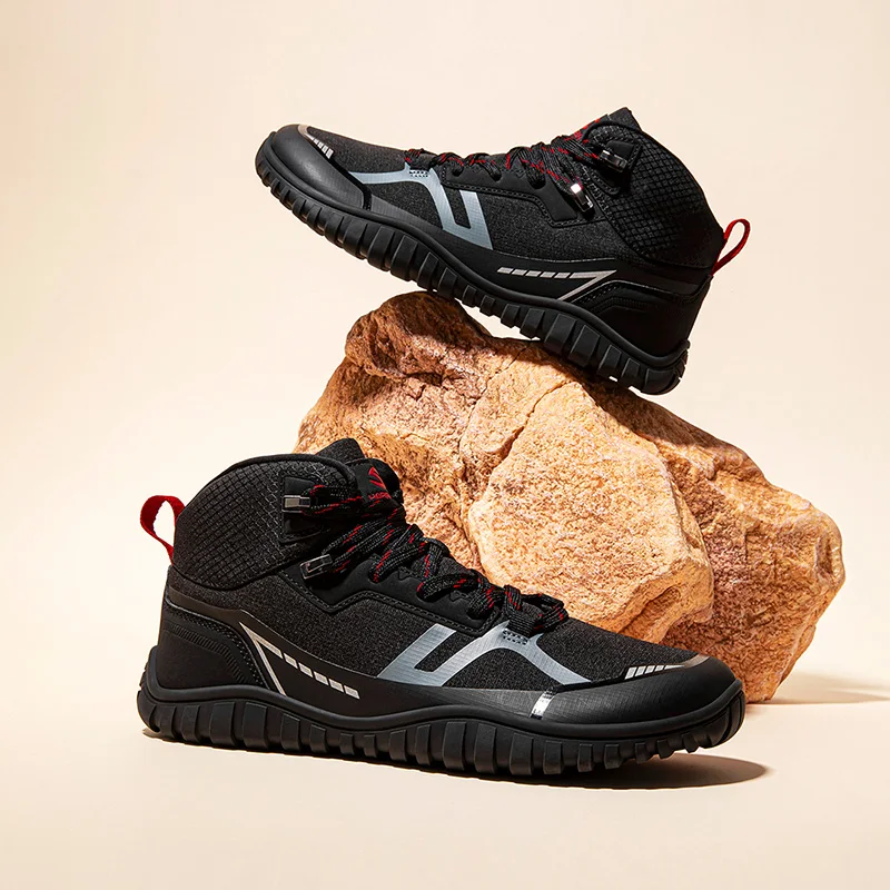 Toe and heel reinforcement structure: The toe and heel are reinforced with Artificial leather to reduce wear and tear to extend the life of this barefoot hiking shoes.