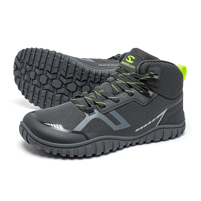HOBIBEAR Mid Top Hiking Shoes Unisex Wide Toe Barefoot Boots Lace Up Non-Slip Trail-Running Shoes